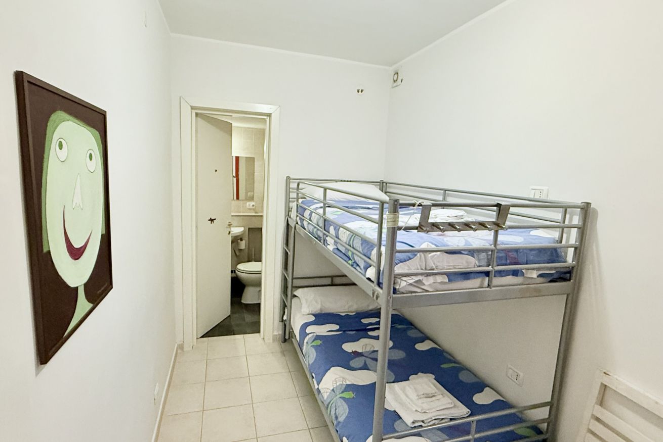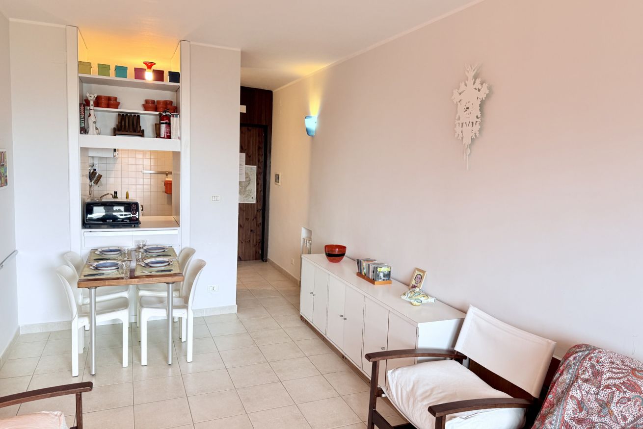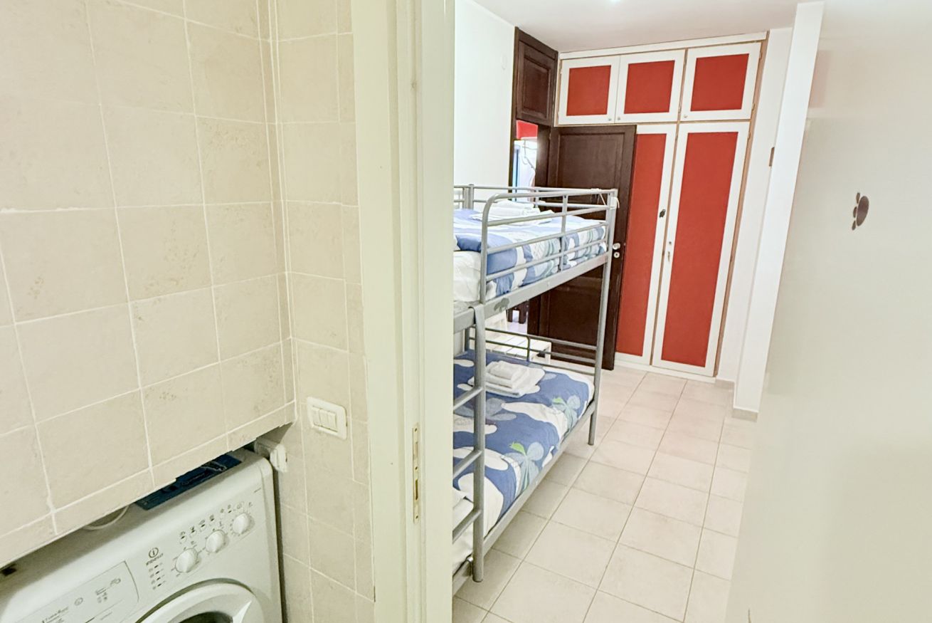 La casa ha 2 camere da letto, 2 bagni (di cui 1 completo), una zona soggiorno con divano letto ed un angolo cottura.
